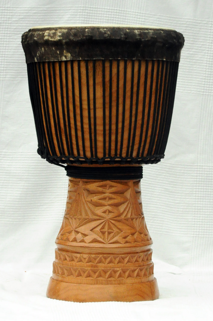 Sehr schöne und gute Djembe ! Top Verarbeitung sehr schöne Schnitzerei und Top Klang ! Eine Oberklasse Djembe zu einem guten Preis ! Bin sehr Zufrieden mit dem Kauf ! Gute sichere Verpackung und schnelle Lieferung kann ich nur weiter empfehlen !