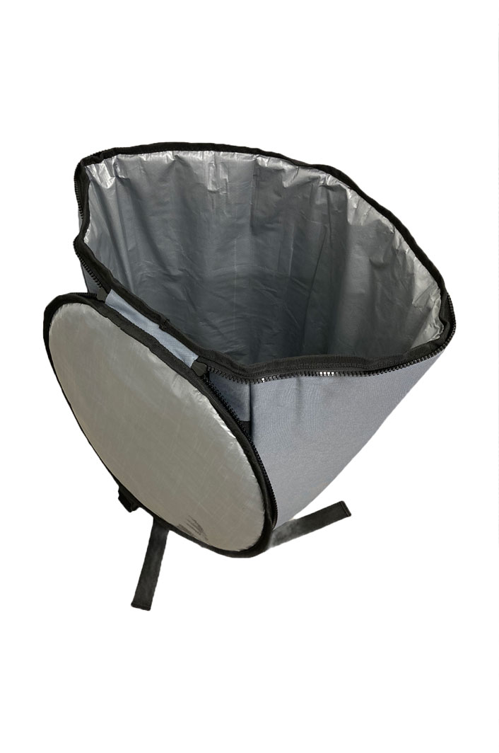 Widerstandsfähiges, isolierendes und glattes Material im Inneren der Tasche, um die Aufbewahrung der Djembe zu erleichtern.