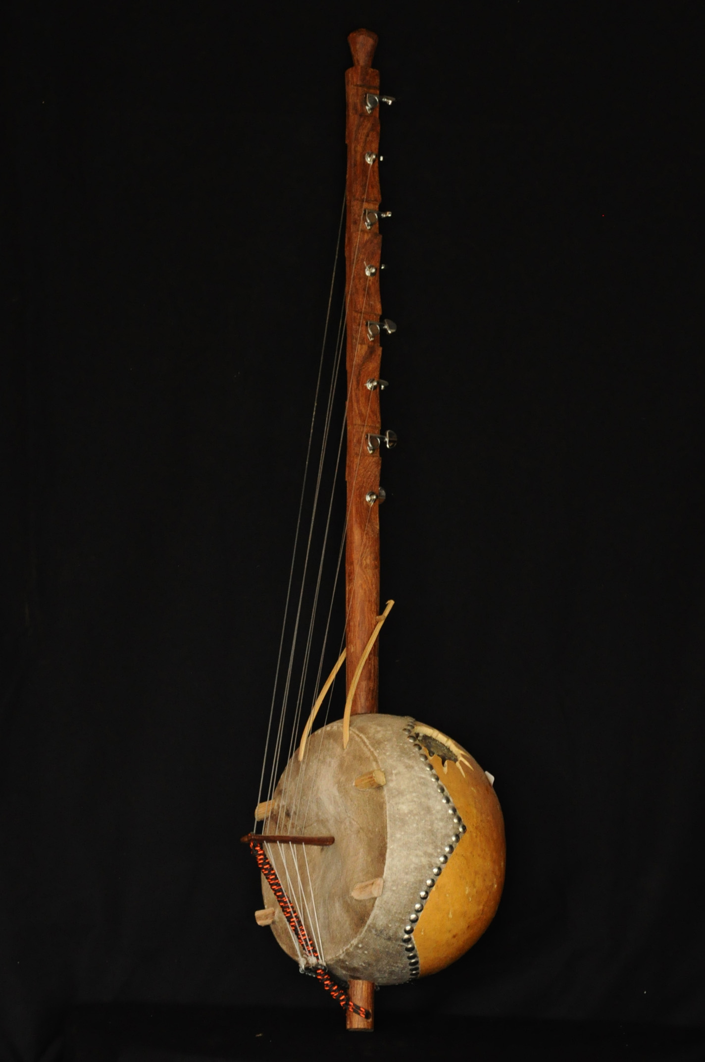 Principalement utilisé au Mali, le kamélé n’goni (« instrument des jeunes hommes »), de six à douze cordes accordées selon une gamme pentatonique avec la voix du musicien, est une harpe-luth cousine de la kora.